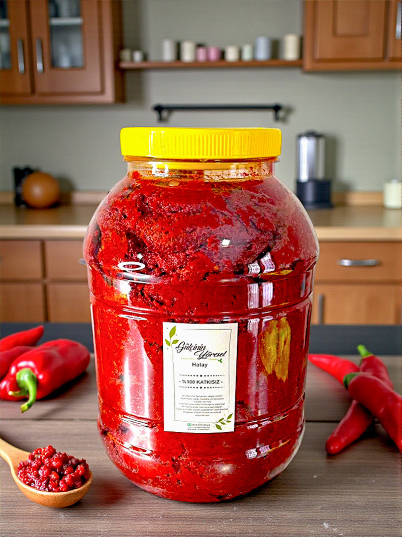 Kışlık hazırlıklar için en avantajlı seçim! Hatay'ın taze kapya biberlerinden, geleneksel yöntemlerle güneşte kurutularak hazırlanan Hatay Biber Salçası (5 kg); yoğun kıvamı, doğal rengi ve Acı/Tatlı seçenekleriyle büyük sofraların vazgeçilmezi.